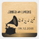 Die Vintagen Gramophone Wedding Stickers in Schwarz sind antike Stickereien, die eine Silhouette eines altmodischen Grammophons mit musikalischen Noten darstellen, die auf einem texturierten Papierhintergrund der Digitalkunst abdriften. Dieses elegante Hochzeitsdesign wäre perfekt für eine thematische Hochzeit der 20er Jahre. Einfach anzupassen, fügen Sie einfach die Einzelheiten Ihrer Hochzeit in den Text-Vorlagen zur Verfügung gestellt. Klicken Sie auf den Button "Anpassen", um weitere Personalisierungsoptionen zu finden.