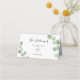 Modernes und elegantes Ambiente. Eukalyptus-Grünsprigs. Personalisieren und Ihre Namen und das Hochzeitstermin. Fügen Sie Ihre Gäste Namen und ihre Tischnummer von Hand hinzu. Die passenden Hochzeitsmenüs sind in unserem Shop erhältlich.