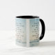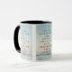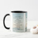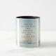 Diese zweifarbige Tasse zeigt einen Lora-Schriftart mit schwarzen Buchstaben, in dem die Bibelschrift "Ecclesiastes 4:9 KJV" auf einem Hintergrundbild dargestellt wird, das eine Wolkendecke mit dunklen Farbtönen von oben unter einem hellblauen Himmel zeigt, sowie das Doppelfarbenlook mit einem Oberwolkenmotiv. Dieser Vers bezieht sich auf das Buch der Ekclesiastes 4. Kapitel zeigt den 9. Vers in diesem Bibel Bibel Zitat Thema aus der King-James-Bibel. Die Felgen & Griffe sind in passenden Farbtönen in Mikrowellen- und Geschirrspüler-Keramik in 11 Unze- oder 15 Unzen-Größen erhältlich.