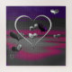 Dieses Bild zeigt eine surreale, digital erstellte Szene mit einer Sammlung metallischer Herzformen, die vor einem dramatischen, mehrfarbigen Hintergrund schwebt. Die Herzen unterscheiden sich in ihrer Farbe - einige sind glänzend silber, andere glänzend schwarz oder dunkel lila. Diese Herzen sind reflektierend und geben ihnen ein dreidimensionales, fast flüssiges Aussehen. Im Hintergrund findet man eine abstrakte Mischung aus tiefen Purpur, Schwarz und pinkisch-magentafarbenen Farbtönen, die eine stimmungsvolle, zwielichtige Atmosphäre schafft. Der Gradienteneffekt in der himmelähnlichen Kulisse erhöht die Tiefe, sodass die Herzen so erscheinen, als ob sie im Weltraum suspendiert oder in einem traumhaften Vakuum treiben.