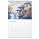 Each month features a tranquil composition: mist-covered mountains, blooming cherry trees, ancient temples nestled in nature, and flowing rivers rendered in soft ink and watercolor.