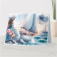 A tranquil watercolor moment that follows the whispers of the sea into evening light. A woman in soft blue sits near the shore as a sailboat glides past weathered boulders, reflecting the last golden hues of day. Gentle motion and stillness intertwine, telling a story of longing, peace, and renewal beneath the open sky. Created in Bluemora Haven’s delicate coastal palette, this piece harmonizes beautifully with Whispers of the Sea at Sunset as part of a serene, storybook pair. AI generated artwork.