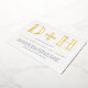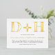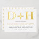 Echte Goldfolie Initialen fett Typografie Hochzeitseinladung. Auf der Rückseite befindet sich ein geometrisches goldenes Muster.