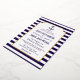 Übung macht perfekt, und diese echten, mit Folie gepressten Einladungen sind der perfekte Weg, um alle Ihre Schlüsselspieler zu einer Hochzeitsfeier und zum Abendessen einzuladen. Die Vorlagenformulierung ist einfach zu personalisieren und das Design eignet sich perfekt für ein nautisches Strandfest. Entsprechende Hochzeitssachen finden Sie in der Sammlung.