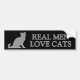 Echte Männer Liebe Katzen Auto Autoaufkleber. Eine lustige Geschenkidee für Katzenliebhaber. Graues und weißes Design mit Silhouette eines niedlichen Sitzkätzchens.