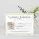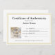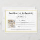 Dies ist eine anpassbare Vorlage für das Zertifikat der Echtheit, die Künstlern mit Kunstwerken hinzugefügt werden kann. Fügen Sie Ihren Namen, Ihre Kunstwerkdetails und das Bild zu den angegebenen Feldern hinzu.