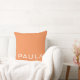 Passen Sie dieses orangefarbene Kissen mit Ihrem Namen, Ihrer Stadt oder einem beliebigen Sprichwort an.