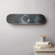Eine Art Sonnenfinsternis Skateboard in Schwarz-weiß und grau.