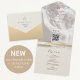 A modern, eco-friendly all-in-one wedding invitation designed to simplify your stationery and reduce waste — while still looking beautifully elegant. This unique design includes four essentials in one piece: your photo, a personalized monogram, a wedding website line, and a QR code for instant RSVP.