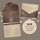 Once folded, this invitation becomes its own matching envelope, featuring soft gold lighting effects, floral line art, return address, and stamp placement. Perfect for rustic, barn, fall, woodland, woodgrain, boho, and cozy evening weddings.