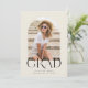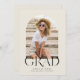 Feiern Sie jahrelange harte Arbeit mit unserer modernen minimalistischen Abschluss-Ankündigung in einem einfachen Schwarz-Weiß-Farbschema. Dieses moderne und minimalistische Design besticht durch ein in der trendigen Bogen-Form gerahmtes Single-Foto. Das Wort "GRAD" überschneidet den unteren Teil des Fotos. Dreh es drüben, um die Details der Abschlussfeier zu finden.