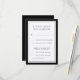 Diese einfache und schicke Hochzeitskarte, die sich mit unserer farbenprächtigen Einladungs-Kollektion für Hochzeitsfeiern abstimmt, weist eine dicke, doppelte Grenze aus knusprigem Schwarz auf einer cremigen ecru Elfenbeinkarte auf, mit elegantem Block und Schriftzeichen in schwarz. Ein elegantes und zeitloses Aussehen für Ihre formale Angelegenheit. Die Karte kehrt zu solidem Schwarz zurück. Der Platz ist für drei Mahlzeiten inbegriffen, sodass die Gäste ihre Wahl angeben können.