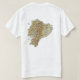 Die Front dieses T - Shirt trägt eine kleine Ecuadorianflagge mit seinem vertrauten Wappen über den gelben, blauen und roten Bändern, während die Rückseite eine Entlastungskarte von Ecuador anzeigt. Verfügbar auf T - Shirts, Sweatshirts, Polo, Langhülsen und mehr.