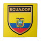 Die Nationalflagge Ecuadors ist in eine goldene Schildform von Imitaten eingebettet, in der der Name des Landes über der Flagge hinzugefügt wird.