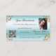 Mit dieser exquisiten Visitenkartenvorlage können Sie Eleganz und Luxus zeigen. Das Design besticht durch glamouröse, verzierte goldene Dekorationselemente in der Mitte und in den Ecken auf einem hellen, glänzenden, eisblauen Hintergrund. Sie können diese Visitenkarte einfach an Ihre Marke, Ihr Monogramm, Ihren qr-Code und Ihr (Mitarbeiter-)Foto anpassen. Alles, was Sie sehen, sind Imitate Goldfolie, aber ein hochwertiges Druckdesign. ♡ von YOUR FAVORITE - entwirft :-) Moderne und berufliche Geschäftsausstattung. ♡ wünsche Ihnen viel Spaß mit diesem Artikel. ♡ www.zazzle.com/store/your_favorite ♡ www.zazzle.com/store/favorite_markeplies ♡