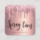 Dieses großartige Spray tans Visitenkartendesign mit Imitaten rosa und kupferfarbene Rose Gold tropfen Glitzer metallische Textur und eleganten kalligraphischen Schriftart.