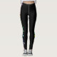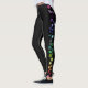 Schwarze Leggings mit Regenbogenfarbedelsteinen werfen beide Beine nieder.