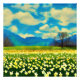 Ein schönes Landschaftsbild, das ein Feld von Narzissen im Vordergrund und Bäume und Berge im Hintergrund in der Ferne darstellt. All das unter einem schönen blauen Frühlingshimmel. Erstellt von fantabuloustef Un beau paysage peint représentant au premier plan on champ de jonquilles et à l’arrière-plan des arbres et des montagnes au loin. Tout cela sous un beau ciel bleu Printmann. Créé par fantabuloustef