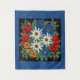Ein Bild eines Blumenmusters mit einem Näharbeitblick Edelweiss weißer alpiner Blumen von Europa auf Ihrem Produkt. Blaue, rote, gelbe und weiße Farben. Leontopodium alpinum von der Schweiz, von Deutschland und von Österreich.