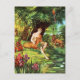schöne, bunte Vintage Gemälde von Adam im Garten von Eden mit wunderschönen Blume, Bäumen, See, Löwe, Pfau, Hirsch und Elefanten und Vögeln, mit Adam, der neben dem Wasser sitzt und das Reh klopft. hübsches Gemälde mit Adam aus Adam und sogar Geschichte der Genese im alten Testament, während er neben dem Wasser sitzt, sieht ein Löwe in seiner Nähe Ein Papagei sitzt auf einem Baum, ein Pfau, sitzt auf einem Baumzweig, und in der Ferne kommt ein Elefant auf ihn zu, mit rosa und violetten Blumen, großen Palmen und Seen.