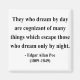 "Die, die von Tag zu Tag träumen, sind sich der vielen Dinge bewusst, die denen entkommen, die nur noch von Nacht träumen" - Edgar Allan Poe.
