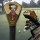 Schreckt Edgar Allan Poe, der einen Goldbug auf seiner Krawatte kitzelt. Farbige Tintenstift-Zeichnung. Eigener Text.
