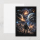 A lone astronaut stands on an alien world beneath swirling galaxies and distant starships, ready to face an epic cosmic conflict.
