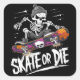 Edgy Halloween Skeleton Reiten Skateboard: Monochr Quadratischer Aufkleber