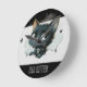 Edgy Kitten Illustration - "Bad Kitten" Text Runde Wanduhr