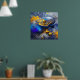 Edgy Modern Blue Yellow Metallic Mushroom Pop Art Poster