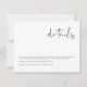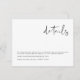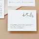 Diese Hochzeitsdetails-Gehäuse-Karte verfügt über einen edlen handgeschriebenen Schriftart und modernes minimalistisches Design. Es ist die perfekte Ergänzung zu Ihrer sauberen und modernen Hochzeitssuite. Sie können diese auch nutzen, um Unterkünfte oder Details zu jeder Veranstaltung anzuzeigen; Babydusche, Brautparty, Ruhestand Party, etc. Bearbeiten Sie *most*, um Ihren Anforderungen gerecht zu werden.