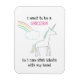 Flexibler Magnet mit einem Einhorn zeichnend. Eine flauschige Wolke am Ende eines Regenbogens im Hintergrund. Rosa und lila Aquarellkonfetti schmücken die obere Grenze. In dem Text heißt es: Ich wollte, ein Unicorn zu sein, damit ich Idioten mit meinem Kopf stechen kann. Hübsch, geil und niedlich.