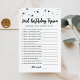 Kaufen Sie dieses bearbeitbare monochrome Spiel und genießen Sie eine hochwertige 2nd Birthday Trivia Karte für Ihre Veranstaltung! Dies ist eine Spielvorlage, Sie können die Fragen, wie Sie möchten ändern! Schwarz und Weiß Sterne Design.