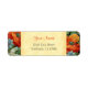 Editierbare Rücksendeadressen-Aufkleber mit orangefarbenen Schriftzeichen und dunkelgrauen Blockbriefen auf Vintager Blumenkunst weißer und roter Mohnblüten auf Imitat-Pergament-Hintergrund.