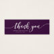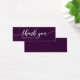Diese stilvolle Mini-Karte enthält die Worte "danke" in weißem Skript und eine bearbeitbare Hintergrundfarbe (klicken Sie auf anpassen, um zu erreichen). Es macht eine großartige Gastgeschenk Hochzeit Tag für Ihre Gastgeschenk Hochzeit Geschenke. Es ist einfach zu personalisieren; ersetzen Sie einfach den Platzhalter-Text, um Ihre eigenen Informationen hinzuzufügen. Für weitere Optionen, wie zum Beispiel den Schriftart, die Textgröße oder den Abstand zwischen den Buchstaben zu ändern, klicken Sie auf die Schaltfläche "Anpassen". *Bitte beachten Sie, dass das Zazzle-Wasserzeichen, das in der Zoomvorschau angezeigt wird, NICHT auf dem gedruckten Endprodukt erscheint. © Rosewood and Citrus