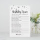 Kaufen Sie dieses bearbeitbare monochrome Spiel und genießen Sie hochwertige Geburtstagtrivia Wie gut kennen Sie die Geburtstagskarte für Ihre Veranstaltung! Dies ist eine Spielvorlage, Sie können die Fragen, wie Sie möchten ändern! Schwarz und Weiß Sterne Design.