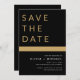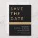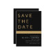 Hochzeit Elegantes Schwarz und Gold Speichern Sie die Datumskarten. Die Save the Date-Karten enthalten eine moderne, handgeschriebene, kursive Schriftzeichen-Typografie, die elegant, einfach und modern nach einem einfachen Hochzeitstag-Fest zu verwenden sind.