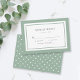 Diese moderne klassische Hochzeitskarte verfügt über eine bearbeitbare Farbe; um die Farbe des Randes und des Hintergrundes von Salbei grün auf die Farbe Ihrer Wahl zu ändern, klicken Sie auf den Knopf Anpassen und ändern Sie einfach sowohl die Vorder- als auch die Hintergrundeunterfarbe. Personalisieren Sie es, indem Sie den Platzhalter-Text ersetzen. Für weitere Optionen, wie zum Beispiel den Schriftart zu ändern, ist es die Größe und Abstand zwischen den Buchstaben klicken Sie auf die Schaltfläche "Anpassen". *Bitte beachten Sie, dass das Zazzle-Wasserzeichen, das in der Zoomvorschau angezeigt wird, NICHT auf dem gedruckten Endprodukt erscheint. © Rosewood and Citrus