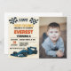 Starten Sie Ihre Motoren! Feiern Sie den großen Tag Ihres Kindes mit dieser aufregenden Race Cars Birthday Invitation, die für Jungen konzipiert ist, die Liebe, Geschwindigkeit, Autos und Wettbewerb. Mit kühnen Rennautos, karierten Flaggenmustern und lebhaften rot-blauen Farben erweckt diese Einladung den Nervenkitzel eines Renntages.