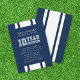 Wiedersehen-Einladung für 10 Jahre mit den Worten "10 Jahre Wiedersehen" im Kollegialstil, mit einem weißen Streifen Muster und einer bearbeitbaren Hintergrundfarbe (klicken Sie zum Ändern anpassen) auf der Vorderseite. Die Karte hat ein weißes Streifen-Muster vor einer bearbeitbaren Hintergrundfarbe (klicken Sie zum Ändern auf Anpassen) für die Rückseite. Personalisieren Sie es, indem Sie den Platzhalter-Text ersetzen. Für weitere Optionen, wie zum Beispiel den Schriftart zu ändern und ihn zu vergrößern oder zu verändern, klicken Sie auf den Button "Anpassen". *Bitte beachten Sie, dass das Zazzle-Wasserzeichen, das in der Zoomvorschau angezeigt wird, NICHT auf dem gedruckten Endprodukt erscheint. © Rosewood and Citrus