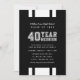 Varsity 40-jährige Wiedersehen-Einladung mit den Worten "40 Jahre Wiedersehen" in einem Collegiat-Stil mit einem weißen Streifen Muster und einer bearbeitbaren Hintergrundfarbe (klicken Sie auf anpassen, um zu ändern) auf der Vorderseite. Die Karte hat ein weißes Streifen-Muster vor einer bearbeitbaren Hintergrundfarbe (klicken Sie zum Ändern auf Anpassen) für die Rückseite. Personalisieren Sie es, indem Sie den Platzhalter-Text ersetzen. Für weitere Optionen, wie zum Beispiel den Schriftart zu ändern und ihn zu vergrößern oder zu verändern, klicken Sie auf den Button "Anpassen". *Bitte beachten Sie, dass das Zazzle-Wasserzeichen, das in der Zoomvorschau angezeigt wird, NICHT auf dem gedruckten Endprodukt erscheint. © Rosewood and Citrus