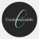 Editable Curry Script Monogram Black White Runder Aufkleber