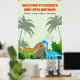 Herzlich willkommen bei Dino-Mite Birthday Sign! Ein lebendiges Poster mit Dschungelbäumen, Vulkanboden und fröhlichen Dinosauriern. Vollständig editierbar — Name und Alter Ihres Kindes hinzufügen. Perfekt als Eingang oder Tafelschild für Ihr Dinosaurier Party Thema.