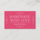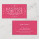 Stilvolle horizontale Kraftpapier-Geschäftskarte mit den Wörtern ", die mit Liebe" blüht handgemacht sind zwischen, alle im Weiß mit einer editable Hintergrundfarbe (Klicken fertigt zur Änderung besonders an). Diese stilvolle handgemachte Visitenkarte ist für Crafters und Hersteller der handgemachten Waren, wie Künstler, Stricker, Damenschneiderinnen, etc. ideal.