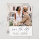 Modernes und elegantes Foto Save the Date Hochzeitskarte. Die Save the Date einladende Einladungskarte beinhaltet die Schrift "White Hand Lettered" und das schlichte und schlichte Design auf weißem Hintergrund, mit dem Sie Ihre individuelle Verlobung Fotografie hinzufügen können.