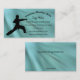 Diese bearbeitbare Visitenkarte enthält eine Silhouette eines Kampfkunstlehrers gegen ein blaues Bebst-Muster an die links und die Geschäftsdetails rechts. Diese Informationen sind editierbar. Ändern Sie also die Details, den Stil, die Größe und die Farbe des Schriftartes. Auf der Rückseite ist ein Feld für weitere Details, die ebenfalls bearbeitet werden können. Genießen Sie Ihre neue Editable Martial Arts Instructor Business Card!