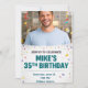 elebrate a special birthday with this modern men’s birthday invitation card featuring a photo and colorful confetti design. This stylish invitation is perfect for adult birthday parties and milestone celebrations like a 30th, 35th, or 40th birthday.