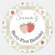 Editable Strawberry Gingham 1st Birthday Favor Runder Aufkleber
