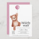 Eine Babydusche "wir können frühzeitig warten" Einladung mit einem Teddybär und einem rosa Ballon für ein kleines Mädchen. Matching Artikel in der Teddy Bear Baby Shower Theme Kollektion erhältlich.