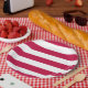 Papierplatte mit bearbeitbarer Farbe (klicken Sie auf die Hintergrundfarbe anpassen und ändern) und weißen Streifen. *Bitte beachten Sie, dass das Zazzle-Wasserzeichen, das in der Zoomvorschau angezeigt wird, NICHT auf dem gedruckten Endprodukt erscheint. © Rosewood and Citrus